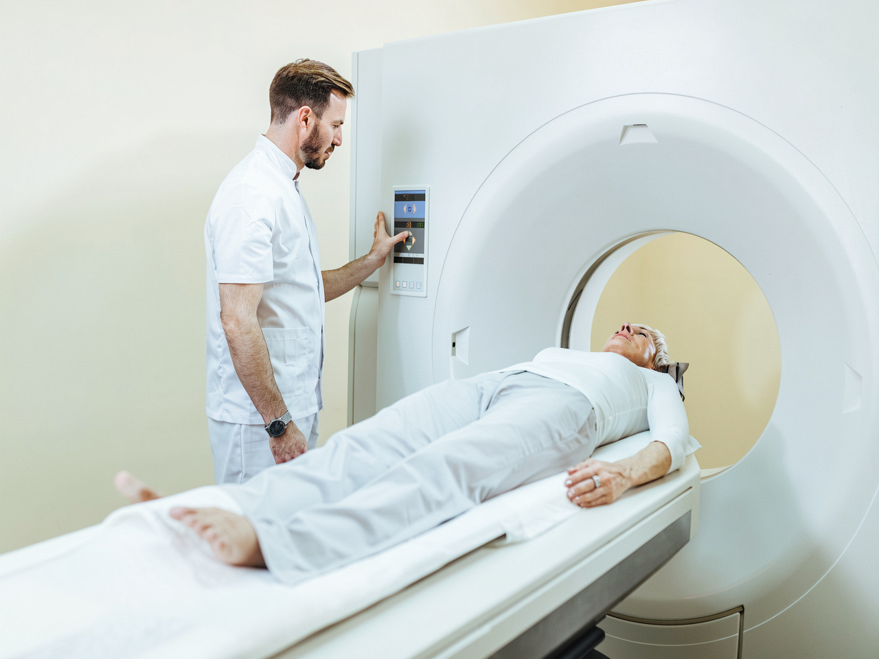 В процессе сканирования нужно лежать неподвижно. Аппарат издает шум, поэтому пациенту надевают наушники. Персонал постоянно на связи: если станет некомфортно, можно в любой момент остановить процедуру.
